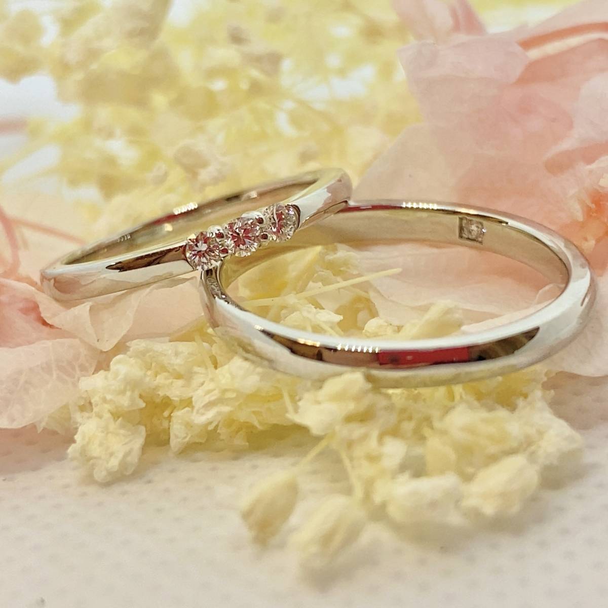 ご結婚指輪をお揃いでお考えの方へ…カオキで人気のペアマリッジリング💍..2ペアどちらもとても人気のデザイン🌟ダイヤの裏ドメもできます😊..素材もいろいろな中からお選びできますので、選択肢は無限大!..お気軽にお問い合わせください。