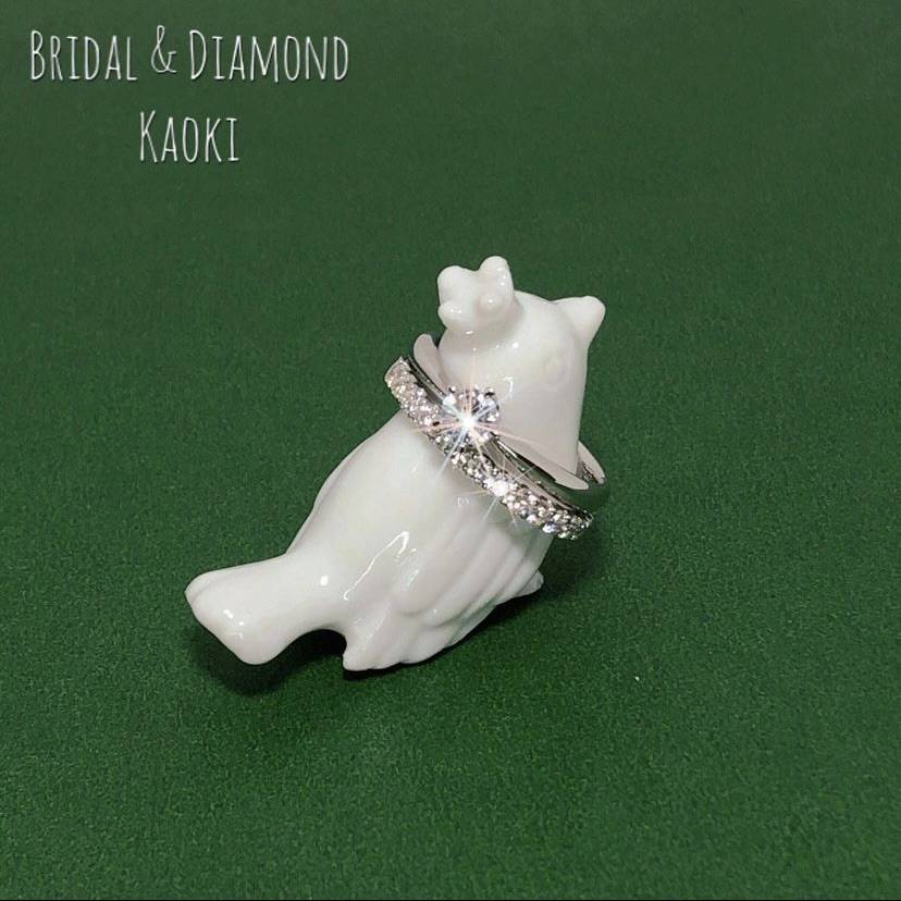 0.3Ct のダイヤモンドリング&ハーフエタニティリングの重ね付け✨✨王道です❣️種類が豊富なカオキでは、エンゲージリングとマリッジリングの重ね付けの試着も充実です💍❤️