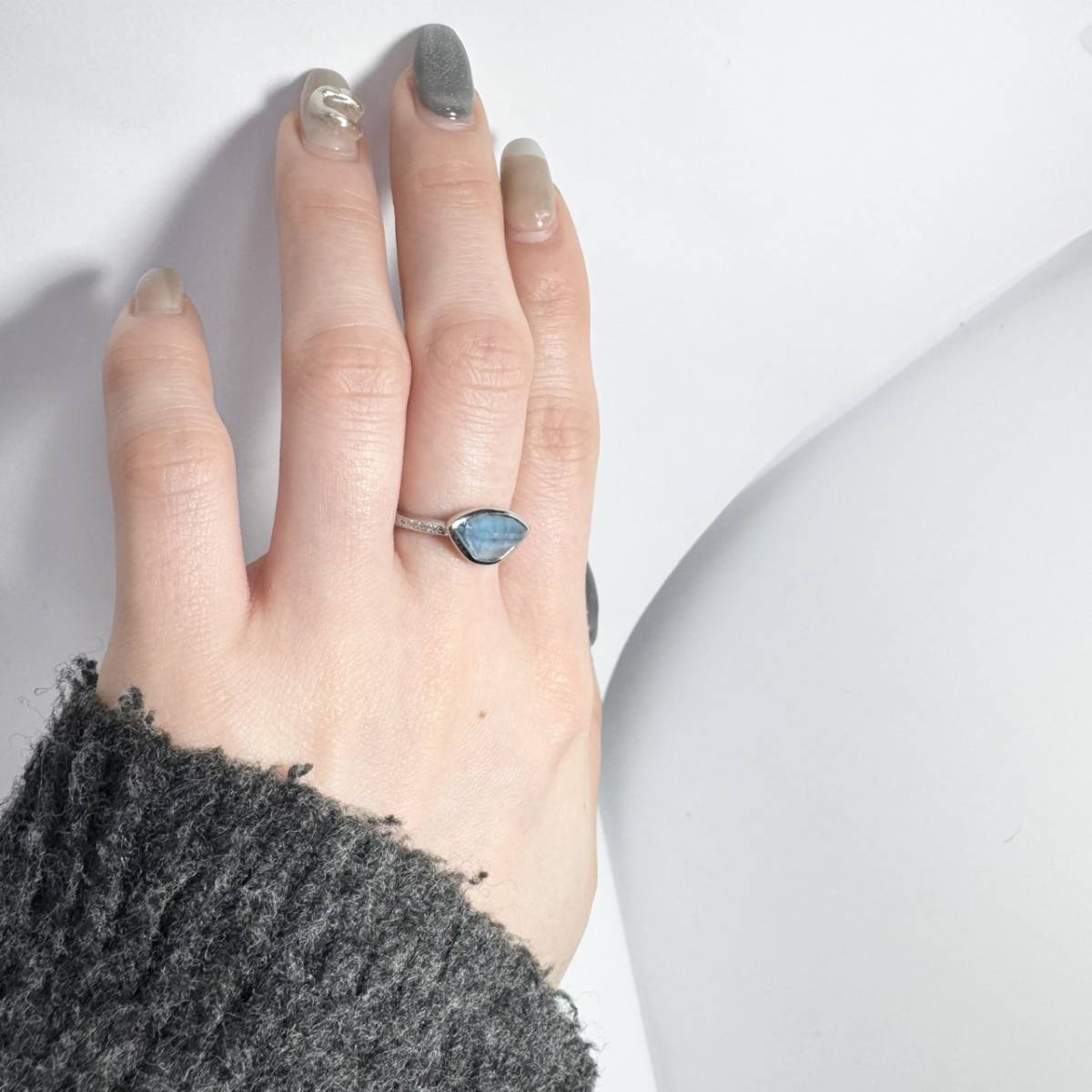 こちらのリングは、暗めでモダンな印象の"ロンドンブルートパーズ"を採用しております🤭