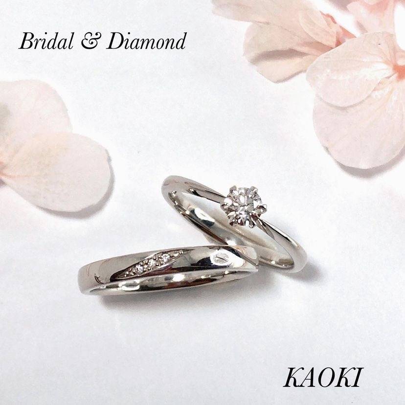 0.3Ctダイヤモンドエンゲージリング・Vラインマリッジリング