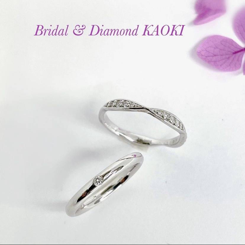 0.3Ctダイヤモンドエンゲージリング・Vラインマリッジリング